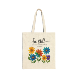 A soft, sturdy cotton canvas tote that carries more than groceries — it carries calm. Hand-printed with a row of bright, hand-drawn flowers beneath the gentle script “be still,” this tote brings a quiet, faith-rooted pause to everyday routines. The heavy canvas holds its shape across the day, from farmers’ markets to church gatherings, while…