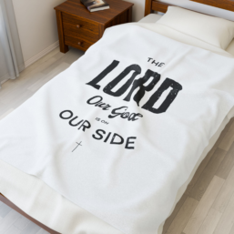 Soft, warm, and quietly bold — this plush velveteen blanket wraps you in both comfort and faith. The single-sided print reads like a gentle reminder: “The Lord our God is on our side,” set against a soothing solid backdrop. It’s made from medium heavy-weight velveteen that feels luxuriously soft against skin and keeps its shape…